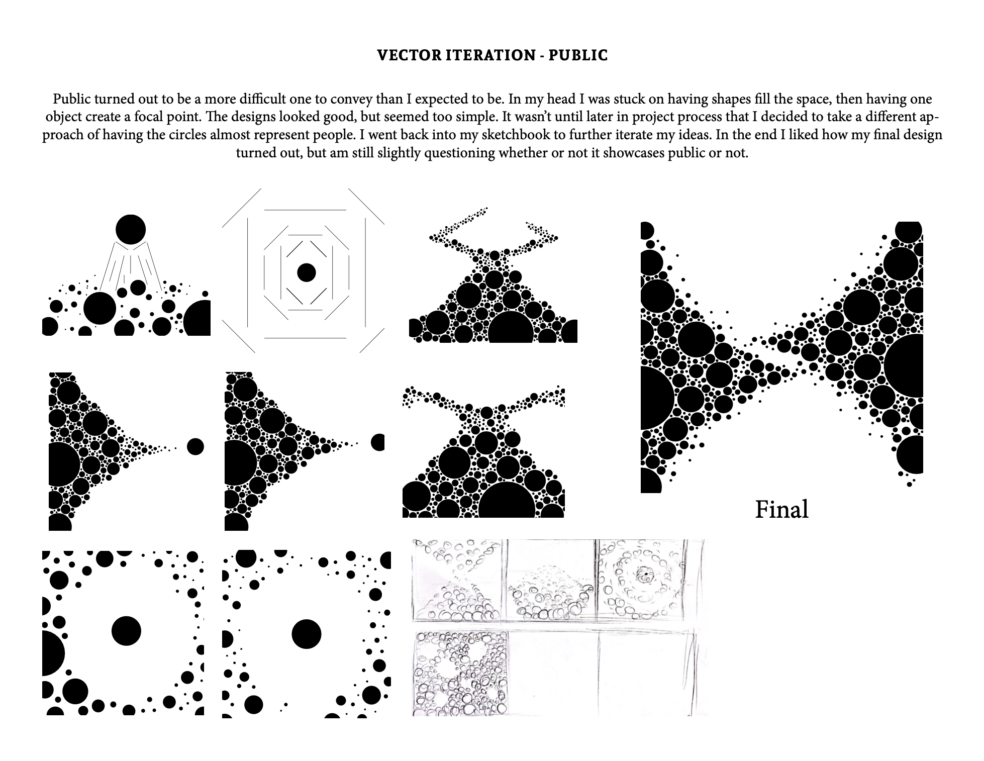 This challenge involved developing three unique compositions, each visually defined by a single abstract word. The project centered on exploring fundamental design elements and mastering the relationship between concept and visual form.