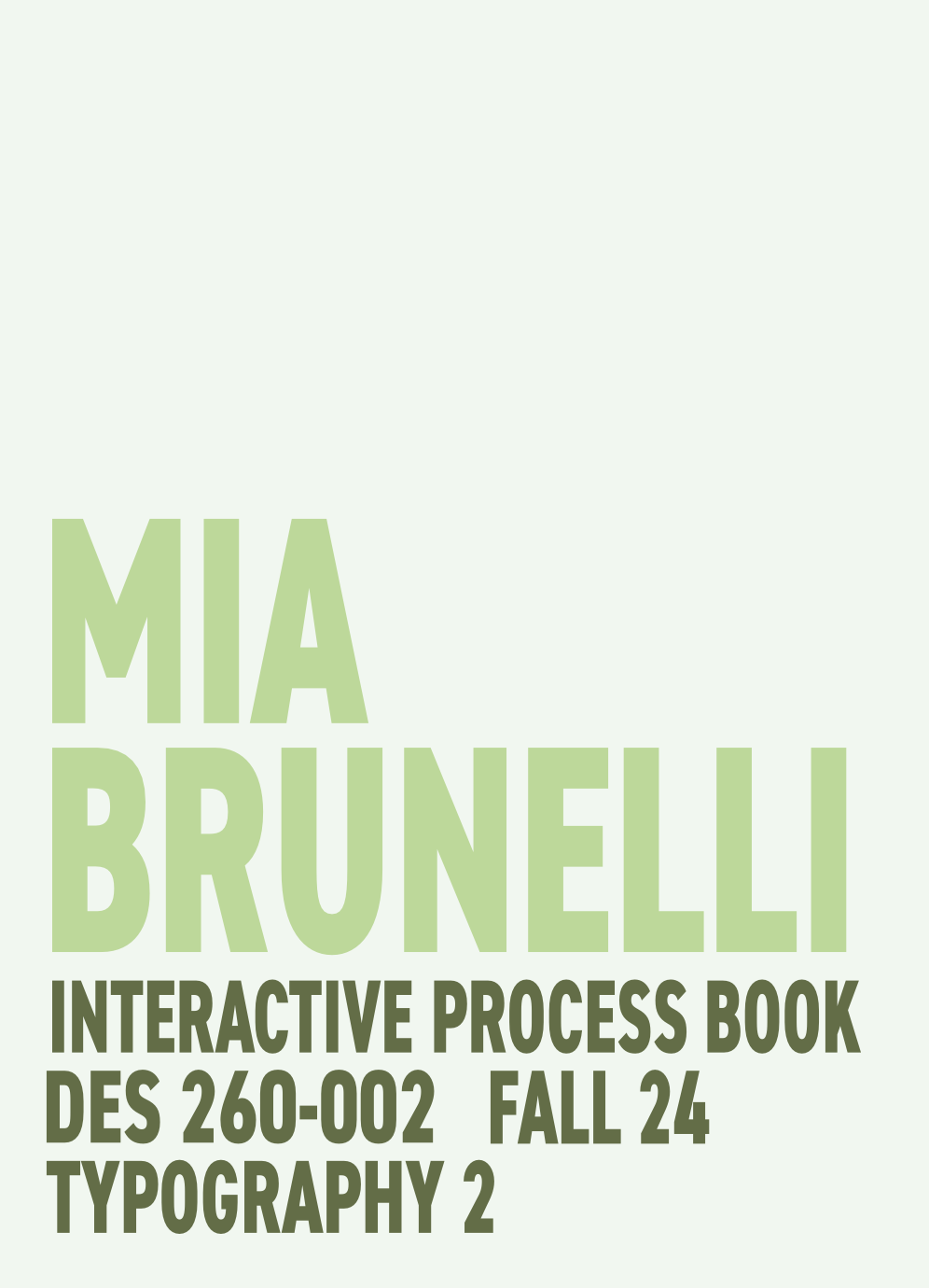 A comprehensive document detailing the conceptual development, research, and technical process of all major projects completed during the semester. It serves as a visual and written reflection on the key typographic principles learned.